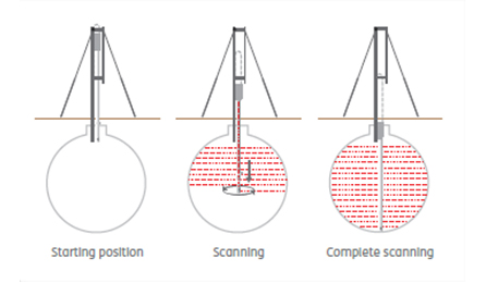 The operation is Safe, Fast with a minimum disruption to the site centimeters of tank diameter giving the user a three-dimensional image of the tank. t